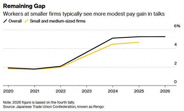 智通财经APP获悉股票配资公司倍杠杆,日本最大工会联合组织Rengo表示,在将与中小企业的谈判结果纳入统计之后,该联合会下属工会成员在今年的薪资谈判中仍获得了超过5%的平均加薪幅度。这一结果将使日本央行得以维持货币政策正常化路径。